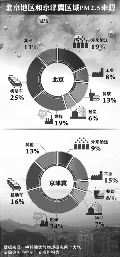 有分析认为,北京的机动车和周边地区的燃煤,共同促成了北京市区的重度污染。北京在燃煤总量上已经减到了2000万吨,但北京周边地区的燃煤总量却是3.5亿吨。
