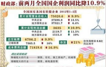 日前,财政部公布的“2013年1-2月全国国有及国有控股企业经济运行情况”显示,当期国有企业累计实现营业总收入同比增长11.3%,实现利润走出上年负增长的状态,同比增长9.7%。