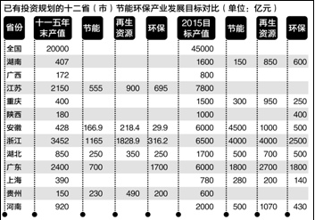 从《锦标赛》归纳的信息看,从2009年11月到今年2月,湖南、广西、江苏、重庆、山西、安徽、浙江、湖北、广东、上海、贵州和河南先后发布了地方版的节能环保产业规划。该报告预计地方十二五产值目标将大幅超越国家规划目标。
