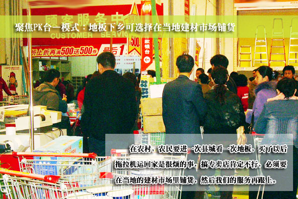 模式二:企业联盟蛋糕做大。近两年,建材行业的各种联盟如雨后春笋般发展起来, 2009年家居行业巨头东鹏陶瓷、欧派橱柜、大自然地板、美的中央空调、雷士照明、红苹果家具缔结“冠军联盟”;2010年圣象集团与长虹开展“购圣象地板60平米得32寸长虹液晶电视”优惠活动、大自然地板携手海尔推出“大自然—海尔绿色惠享”计划、德尔地板又同TCL、美的携手推广全方位的“系统绿色家居”解决方案、美尔凯特集成吊顶与格力空调的合作等跨界联盟;中国林产工业协会地板专业委员会、中国林科院木材工业研究所发起组织曾以零售价179元/平方米起和249元/平方米起的统一价位推出三拼三层实木复合地板和独幅三层实木复合地板优惠消费者,后又在全国范围通过“百城盛惠”全国三层实木复合地板促销季等同业联盟。今年“冠军联盟”又吸纳了万和电器、第二届全国地板超级店员大赛活动等说明了这些联盟企业在市场上都不同程度的偿到了甜头,让利于消费者,消费者才会给他们“满意的回馈”,进而提升销量增加利润。不论联盟合作的深浅和形式,只要让合作 方能共赢,就是能够开展进行的。