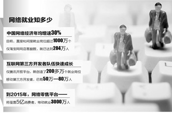 课题报告显示,中国网络经济年均增速30%,累计创造的直接和间接就业岗位超过1000万。