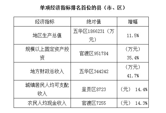 另外,五华区GDP总额、地方财政总收入均排首位;官渡区在农民人均现金收入、规模以上固定资产投资两项指标上排名第一,其农民人均现金收入7255元的水平,即便在城镇居民收入中,也可跻身前10。