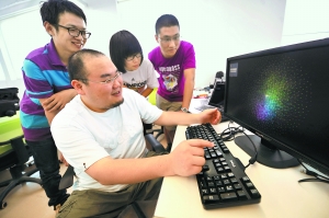刘晗和团队在研究他们用数据分析做出的某娱乐事件舆情模型。本报记者 何冠欣摄