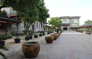 我带着无比的满足、酣畅离开了现代艺术馆,爬上数层台阶,来到半山腰,峰回路转,柳暗花明又一村——正对面前的是“紫砂历史馆”,左手边“名人名作馆”,右手边“古代陶瓷馆”,本来已是心满意足的我,好似突然捡到意外的宝贝,内心怦然,三步并作两步,一头扎进紫砂历史馆,以致我早已无暇顾及那两旁郁郁葱葱的迎宾古树,美轮美奂的迎宾陶器了。