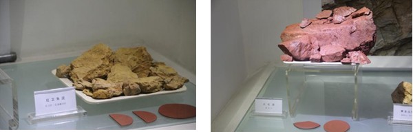 为何蜚声中外的紫砂艺术,在华夏广袤的土地上唯独丁蜀小镇声名远扬、得天独厚?紫砂历史馆第二陈列室将给你答案。究其根本原因,乃是得益于上天特赐紫砂壶的原料——紫砂泥,该地区这种特有的矿物原料,被人们誉为 “五色土”、“富贵土”。在博物馆中,形形色色的紫砂泥尽收眼底,有红泥、紫泥、本山绿泥,在这三大类之下,又细分出多种小类。各种紫砂泥由于矿区、矿层的分布不同,烧成温度时稍有交错变化,其色泽就变化多端。同时加上现代化工业技术介入,在这些基泥里加配各种适量的化工着色剂,使其制成品彩色更加丰富,更符合作者创作的要求。并非说除丁蜀镇之外其他地方就没有紫砂泥矿,但这里的紫砂泥无疑被公认为是最佳泥矿,制壶首选。