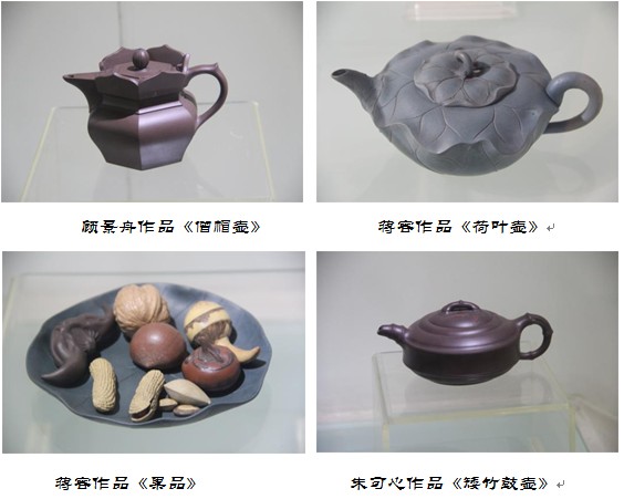 在接下来第三、第四陈列室中,我像个孩子一样,完全沉浸在大师们带来的艺术享受之中,我乐此不疲、津津有味地品尝着紫砂茗壶艺术的甘美。顾景舟大师的《僧帽壶》,蒋容大师的《荷叶壶》、《果品》,朱可心大师的《矮竹鼓壶》,吴云根大师的《牛盖羊桶壶》,