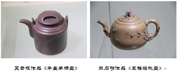 此外,《舞壶》、《梅桩三足香炉》、《大东坡提梁壶》等佳作,款款天马行空、优美清新、典雅生动,件件作品都承载着作者的畅想、寄托着文人的诗意。在面对紫砂作品时,每人喜欢它都可以有不同理由,有人爱简练,有人偏繁复,有人喜精巧,有人求古拙,有人迷古典传神,有人痴现代意识,但所有情感述求在紫砂艺术里都同归于一,叫人百看不厌、赞不绝口。