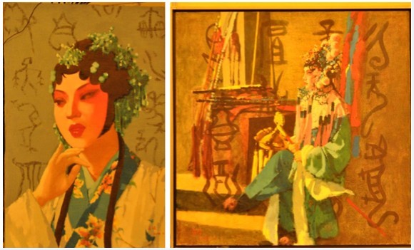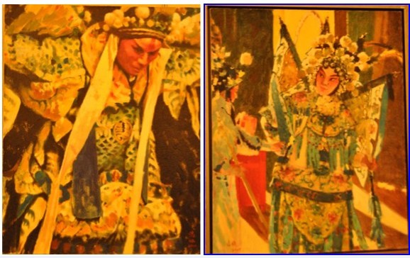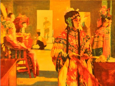 王占欣的作品视角独特,善于从瞬间抓住“精彩镜头”因以大胆的油墨色彩加以体现。从她的系列作品中你可以感受到她那摄影师般的眼光和视角,将幕后形形色色的演员、候场、歇场、上场的演员形体神态表现的淋漓尽致。而李红兵则现实主义手法,将演员的姿态变换,静与动结合,以内敛的色彩、雅致的风格有机的融合在一起,给人以美与静的展示。