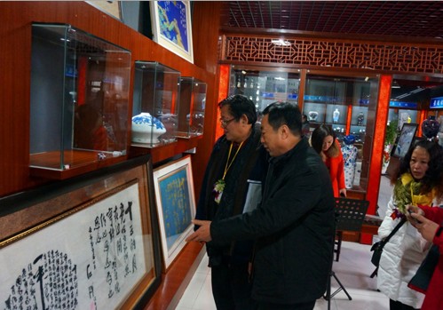 与会嘉宾参观了在北京马连道紫荆阁二楼展出的文化艺术创新作品。在这些作品里有中国工艺美术大师张育贤、中国陶瓷美术大师林正茂等青花瓷艺术作品,有珍珠文化艺术家钱琳萍用珍珠创意的石祥《十五的月亮》《望星空》的书法创作的作品。中国书法协会理事,书法艺术家赵立凡、广东省书法协会副主席陈春盛、中国著名甲骨文书法家苑建国,海派画家姜云宗、文化部中国书画院副院长杨国灿、山水合璧文化艺术中心,中国高级工艺美术师刘中荣、享受国务院政府特殊津贴,国家级技能大师徐靖、江西省高级工艺美术师张吟玲、江西省高级工艺美术师张一健等的作品同时展出。