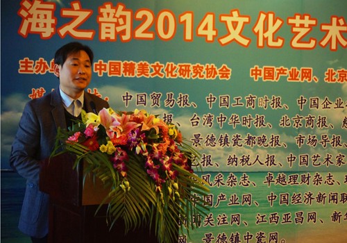 活动主办方之一,海之韵文化艺术中心总监江异在致辞中表示,本次活动是陶瓷、书画、珍珠三大艺术的艺术融合,是跨门类文化结合的一种尝试,是艺术与市场结合,梦想与现实的最好实践。