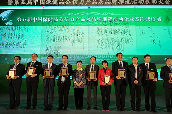 经过消费者投票结合专家评议,第五届中国保健品公信力产品及品牌推选活动产生了如新华茂、保龄宝双奇润生、中健行嵩珍牌、诺鼎嘉立欣、百岁天下、畅达等100个公信力产品,和也牌、四世同堂牌、碧生源牌、康麦斯牌、中脉牌、森山牌、珍奥牌、康佰牌、安琪纽特牌、雅特牌等十大公信力品牌和碧生源牌、珍奥牌、森山牌三大保健行业名牌。这些公信力产品及品牌受到大会的隆重表彰表彰。