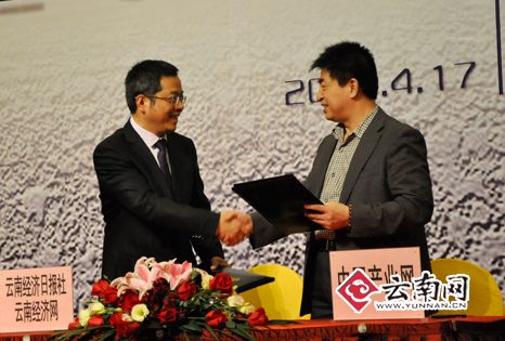 中国产业网总裁胡英暖与云南经济日报副总编辑李陶签署协议