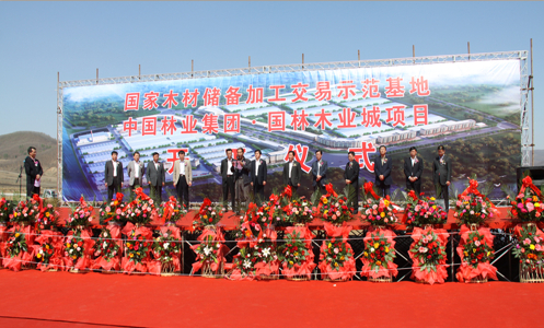 中国产业网讯 4月28日上午,位于绥芬河边境经济合作区内的国家木材储备加工交易示范基地——中林集团国林木业城项目正式开工。中林集团总经理宋权礼,黑龙江省林业厅厅长蔡炳华、绥芬河市市委书记赵连钧、市长王居堂等有关领导以及工程规划、建设、监理方负责人出席了开工仪式。
