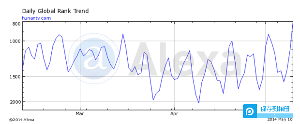 ② 自己玩视频网站,是"求速死"的节奏吗?与湖南卫视的"芒果TV"类似,安徽卫视也有自己的视频网站"海豚TV",不过两者体量差异巨大——芒果TV在5月12日的Alexa中文站排名为127名/全球1300名,海豚TV的中文排名为6222名/全球55923名。(下图分别为芒果TV和海豚TV的Alexa全球排名走势,点击可见大图)