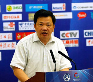 7月22日,新华社副社长慎海雄在中国新兴媒体产业融合发展大会上致欢迎辞。新华社记者 沈伯韩 摄
