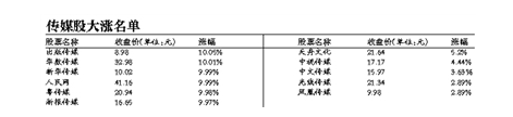 尽管该消息避开了当日股票交易时间,选择当日下午5点40分左右首发,依然没有阻挡传媒股上涨的热潮。目前上涨的传媒股多为国有媒体。