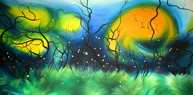 梁东梅的油画作品,首先给人美感,第一次见其作品,你会被那律动的线条和明亮的色彩所吸引、所折服,人们愿意驻足,愿意停留。在美的作品面前,你甚至想将其收入自己的囊中,挂入自己的厅堂。“我现在已经开始想象这幅作品要是挂在我大厅的那个位置,应该是很不错的!”当一位朋友第一次见梁东梅作品《月光下的萤火虫》如此开玩笑的说。用句大白话来讲:梁东梅的油画“好看”!