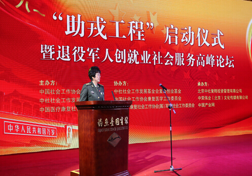 “助戎工程”启动仪式暨退役军人创就业高峰论坛上,韩瑞芬以“助戎工程”形象大使的身份,代表“助戎工程”建设组织机构和退役军人创就业服务联盟,宣读了“退役军人创就业服务联盟倡议书”。