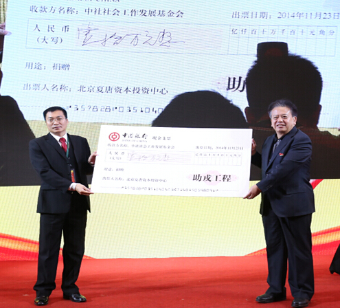 中社社会工作发展基金会秘书长王红卫代表“助戎工程”与中乐集团董事长潘广钦签署了“助戎工程”战略合作协议。中国社会工作协会副会长兼秘书长赵蓬奇代表“助戎工程”接受了夏唐资本的捐赠。出席会议的海军航空兵原司令员马炳芝中将等11位著名军旅书画家、著名美术教育家常瑞伦向大会和“助戎工程”捐赠了自己的书画作品。