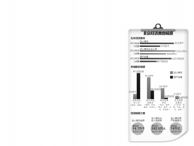 北京市统计局发布的普查结果显示,2013年末,全市共有从事第二产业和第三产业的法人单位63.1万个,比二经普增加25.3万个,增长67%;产业活动单位8.6万个,比二经普增加3.1万个,增长55.8%。