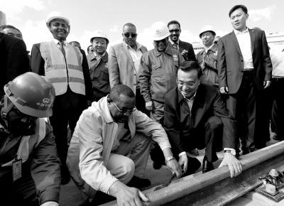 5月6日,李克强在埃塞俄比亚为中方承建的轻轨项目亲手拧上最后一颗螺钉。