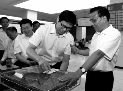 9月11日,李克强在天津滨海新区行政审批局办事大厅,见证109枚废弃的审批公章被封存。本版图片/中国政府网