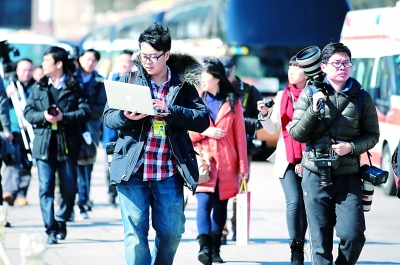 2014全国“两会”,记者以全媒体装备上阵 张茂/CFP
