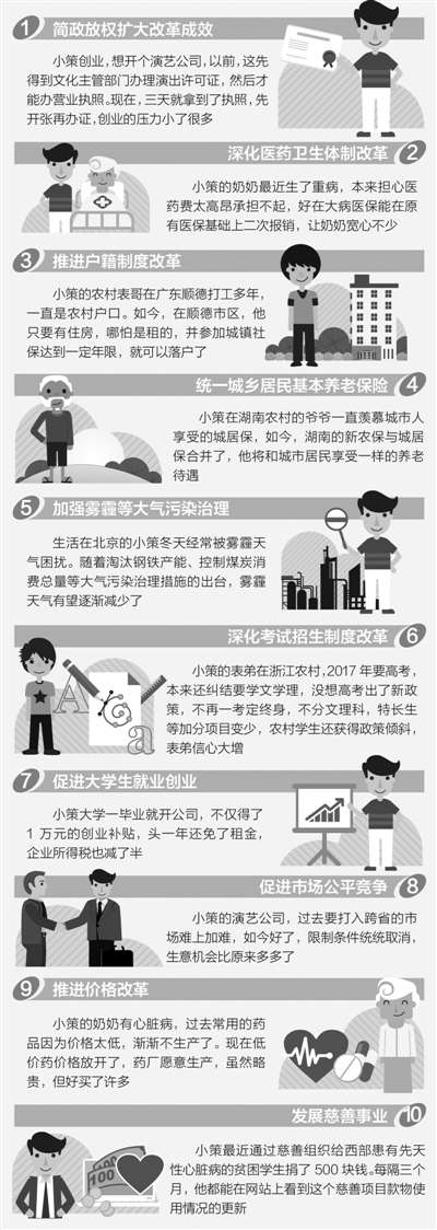 编者按:2013年,十八届叁中全会就全面深化改革作出战略部署。2014年,国务院及其各部门在稳增长、调结构、促改革、惠民生等方面出台了一系列重要改革举措。这些改革举措中,哪十项最受网友欢迎?日前,中国政府网微博推出“网友最关心的国务院2014年十大政策”评选投票。1月3日投票结果正式揭晓,本版梳理了这十大政策的亮点。