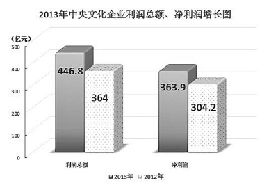 从“白皮书”呈现的数据“盛宴”中,一组数据最有分量:截至2013年末,全国国有文化企业共计12159家,同比增长12%;资产总额22420.2亿元,同比增长23.1%;利润总额1081.2亿元,同比增长23.2%,表明国有文化企业保持了稳健发展态势。而在第六届全国“文化企业30强”中,国有或国有控股企业21家,占总数的70%,主营收入和净资产均占入选企业主营收入总和的80%,也反映了国有文化企业作为文化产业的主力军,发展活力和市场竞争力进一步增强。