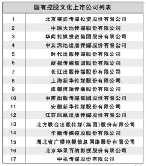 截至2013年末,我国A股市场共有国有控股文化上市公司17家,总股本合计151亿股,比2012年末增长了7.8%,总市值合计达1937.2亿元,比2012年末增长了62.7%,国有控股文化上市公司已成为我国文化市场上的重要力量,并购重组也成为国有文化企业改革发展的“助推器”。