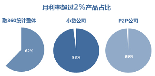 大数据清晰显示,超过6成的小微企业贷款产品月利率达2%以上,为62%。在具体的产品分布上,九成以上的小贷公司和p2p平台的产品月利率都超过2%,这些机构融资额度不大,门槛也低,但确实存在融资成本高的问题。这种过高的利率水平危害极为明显,在经济下行周期中,将导致小微企业缩减融资需求,经营更加困难。