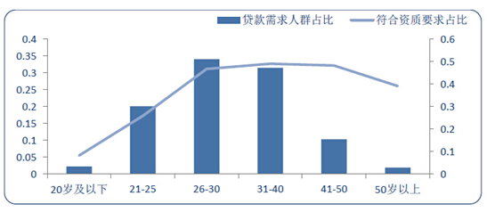 大数据告诉我们,2014年26-30岁和31-40岁两个年龄段人群是贷款需求的主要人群,占比达65%,且审批通过率也很高;21-25岁人群占所有贷款申请人总数的20%,然而只有26%的人符合资质要求,这一年龄阶段的人普遍有大额消费(买房、买车…)或创业需求,不过他们中的大部分人却并不符合要求。