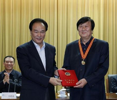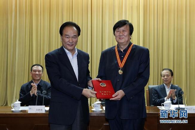 1月22日,新华社社长、党组书记蔡名照为汤计颁发奖章及证书。当日,新华社举行汤计同志记功表彰暨报告会。中共新华社党组日前决定,对在推动呼格吉勒图案重审中作出突出贡献的新华社内蒙古分社记者汤计予以表彰,记个人一等功。新华社记者 沈伯韩 摄