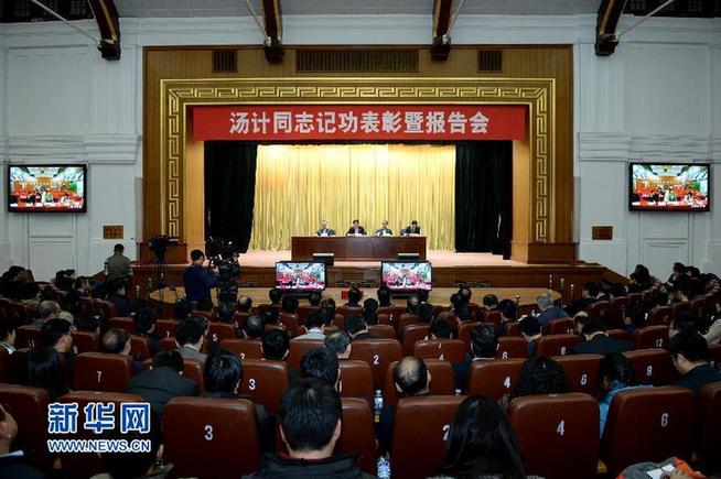 1月22日,新华社举行汤计同志记功表彰暨报告会。中共新华社党组日前决定,对在推动呼格吉勒图案重审中作出突出贡献的新华社内蒙古分社记者汤计予以表彰,记个人一等功。新华社记者 李鑫 摄