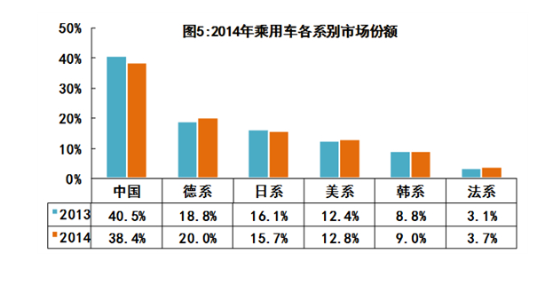 2014年,自主品牌乘用车销售757.33万辆,同比增长4.1%,占乘用车销售市场的38.4%,市场份额同比下降2.1个百分点。其中自主品牌轿车销售277.44万辆,同比下降17.4%,占轿车市场的22.4%,市场份额同比下降5.6个百分点。