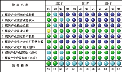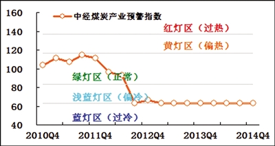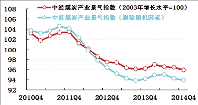 2014年四季度,中经煤炭产业景气指数为95.9,比三季度下降0.5点;中经煤炭产业预警指数为63.3,连续8个季度在“浅蓝灯区”运行。