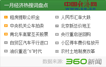 “月度经济热词”由中国经济网与360新闻联合推出,按网络搜索频率排出,是对过去一个月经济热点的回顾。