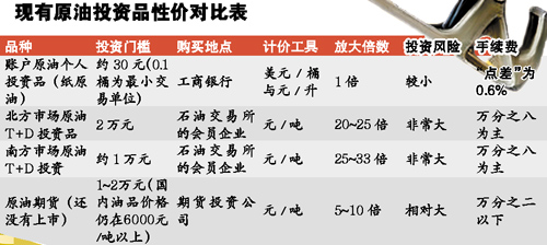 对个人投资者来说,“抄底”油品,首选没有放大功能的“纸原油”,其次是投资在油企领域的基金产品。高风险偏好者可参与T+D操作,但要态度慎重。在未来几个月,原油期货将上市,也可以成为进取型投资者的选择。