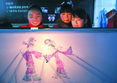 近日,河南省灵宝市函谷关镇中学学生在练习表演皮影戏。近年来,皮影戏走进该市中小学,在丰富学生校园生活的同时,进一步弘扬了中国传统文化。刘晓伟 摄