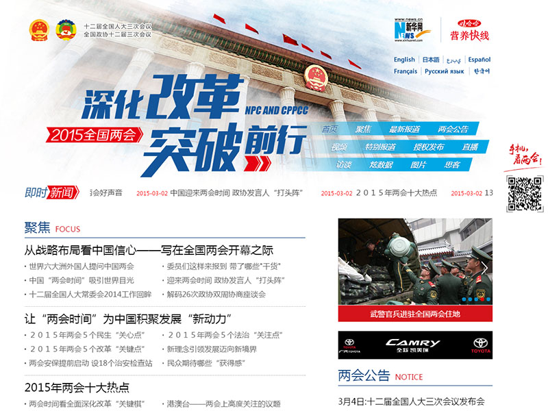 新华网的主题点明了2015年是深化改革的关键之年,而深改“棋局”需要更好谋势、更稳落子,方能乘破竹之势,执楫奋进、克难前行。新华网的主题设定简明大气,蕴含深意。