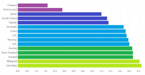 并不富裕的泰国成为最不“痛苦”的国家可能有些意外,这部分归因于其异常低的失业率。目前,泰国失业率降至1%下方,并且尚未引发通胀。但是,需要注意的是,去年5月份,泰国发生政变。泰国想达到发达国家生活水平还有漫长的路要走。