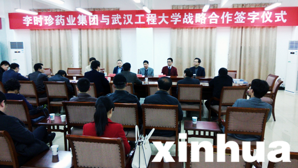 李时珍药业集团与武汉工程大学战略合作签字仪式现场。