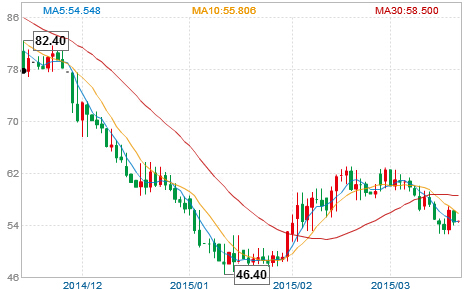 布兰特原油期货收低1.48美元,结算价报每桶54.43美元,此前一度大跌2美元。