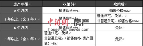 表:二手房营业税政策调整前后对比