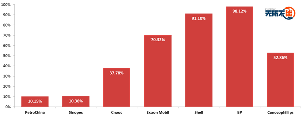 五、中国三大油公司的国际油气产量比重较低,国际化程度未得到充分体现
