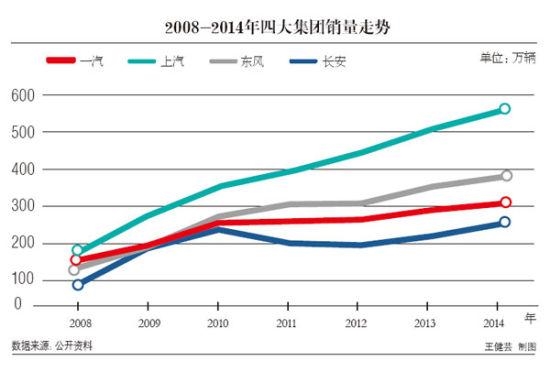 根据中国汽车工业协会发布的销量数据显示,2015年1月,一汽集团销量被远在西南的长安汽车集团超过,在车企排名中从第三滑落到第四。