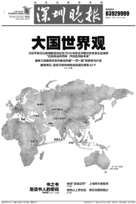 都市类报纸在本届博鳌亚洲论坛的作为,版面包装毫无疑问是“功臣”之一。比如《都市时报》的《“一带一路”圈定四大区》、《东南快报》的《新疆福建成“一带一路”核心区》延续了在头条导读编排上的较高水平,尤其深圳的两家都市类报纸表现不凡:《晶报》将本届博鳌亚洲论坛的亮点集中提炼为《“命运共同体”火了》《“一带一路” 深圳获提名》等几个核心导读标题,以“一带一路”圈定省份沿海城市的地图为背景,整版制图设计,简洁美观。《深圳晚报》则以博鳌亚洲论坛主要成员国的地图框架为设计蓝本,将习近平主席的主旨演讲概要、“一带一路”愿景与行动方案核心、亚投行意向创始成员国最新申报者这三大最受关注的题材统筹起来,以《大国世界观》为总标题,磅礴大气,与本届年会的规格、价值、深远影响力相得
