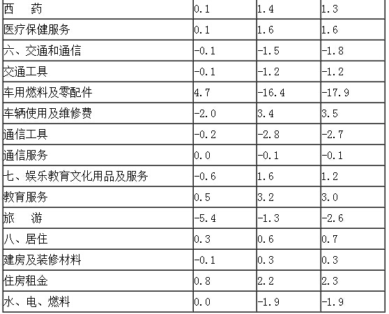一、各类商品及服务价格同比变动情况