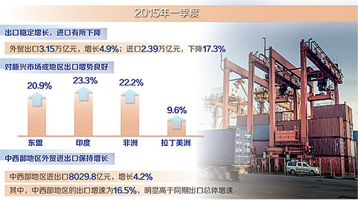 海关调查显示,2月份,中国外贸出口先导指数环比回升1.0,但3月份又较2月份下滑1.4。“这表明今年二季度我国出口向好仍存在不确定性。”黄颂平说,尽管去年下半年以来国际大宗商品价格持续走低,我国外贸企业原材料成本有所下降,但与此同时,劳动力、融资、汇率、环保等成本依然居高不下。我们要正确看待外贸发展新常态。