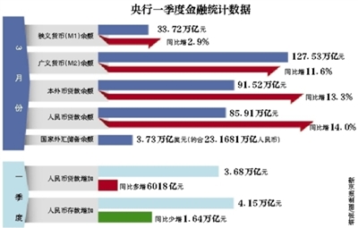 一季度人民币贷款增加3.68万亿元,同比多增6018亿元,其中3月份新增人民币贷款1.18万亿,环比上月反弹,也高于历史平均水平。